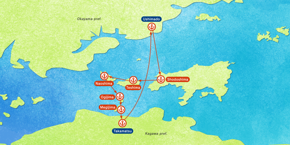 This time we will introduce you to three islands on the Hiroshima Prefecture side, among the 6 islands of Shimanami Kaido.