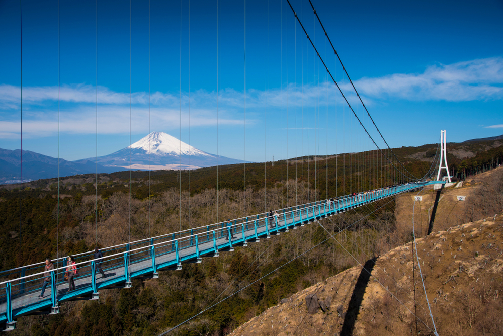 Il est le plus long pont suspendu et piéton du Japon avec une longueur de 400mètres. Ce pont fut achevé en 2015, et nous pouvons voir y admirer la baie Suruga et le mont Fuji.