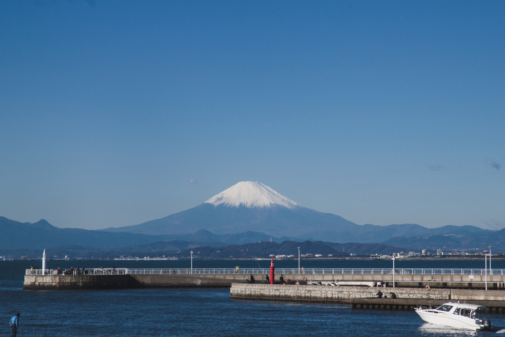 There is a beach in Enoshima, from where you could admire Mt. Fuji if the weather is nice, filled with beachgoers in the summer.